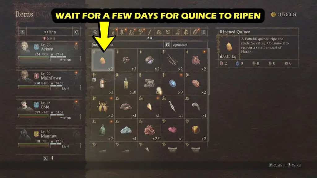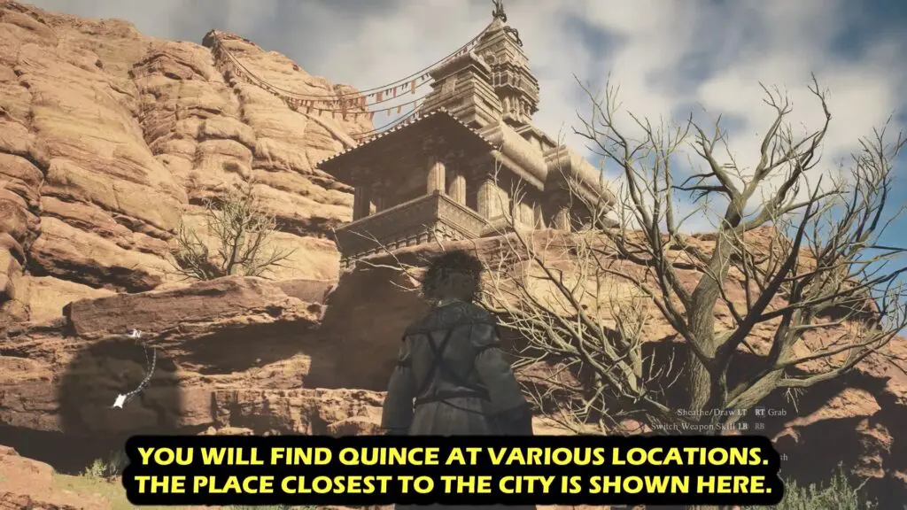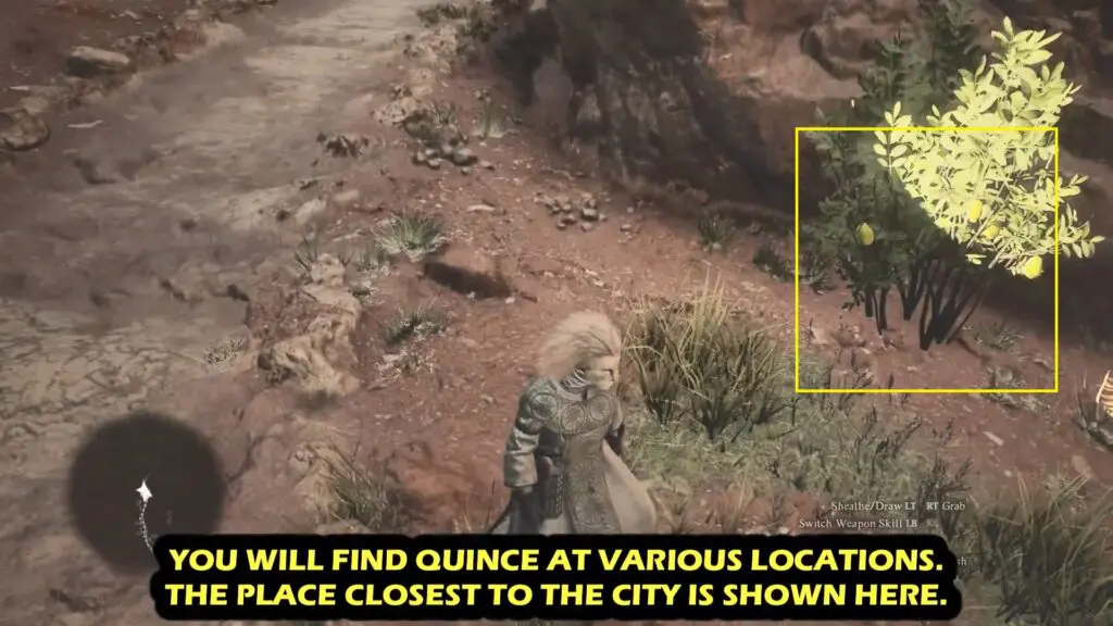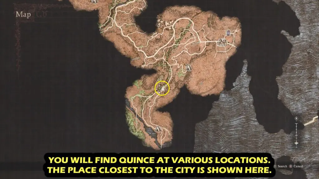 Isaac asks you to bring him a Ripened Quince to help him improve his vision. Quince can be found at the location shown below. Refer to the image and map below.