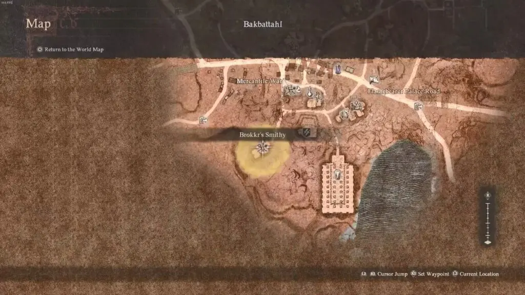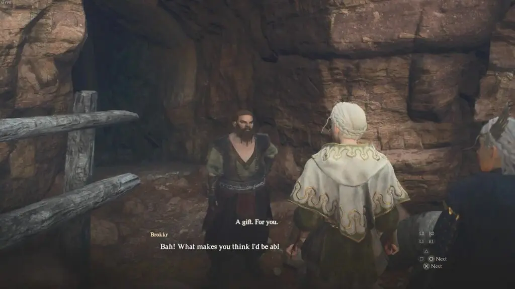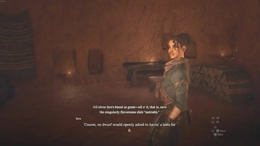 Proceed to Brokkr’s Smithy in Bakbattahl and speak with Sara (NPC). It recommends placing a portcrystal as you’ll be making multiple trips. She agrees to help but asks for a dish for the dwarf.