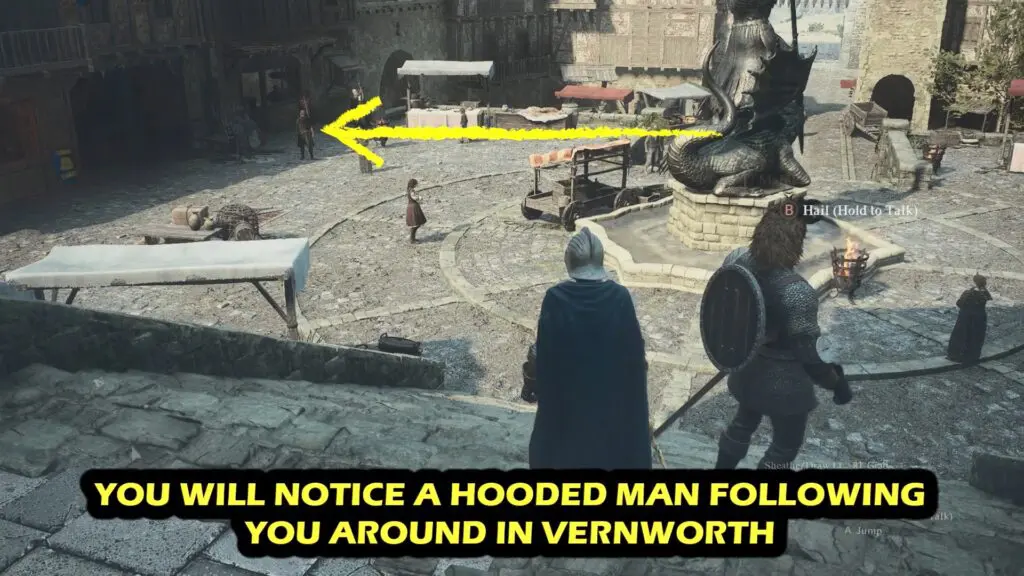 Captain Brant will advise you to roam around Vernworth to attract the stalker. Stalker is a guy dressed in a brown cloak and wearing a black hoodie who generally follows you throughout Vernworth’s marketplace. Also, look for your pawns to comment like “I sense eyes upon us.” which indicates that the stalker is nearby.