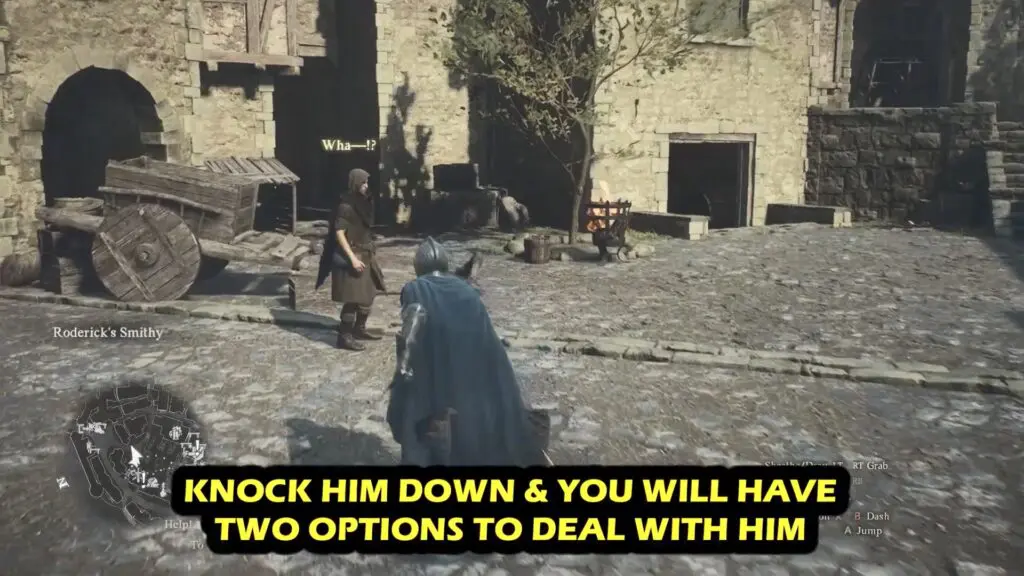 He’s the only one who likes to run away if you approach him, while everyone else walks normally. When you see this man in the black cloak, sprint and chase him down. Once you’re near enough, use the grab button to tackle him.