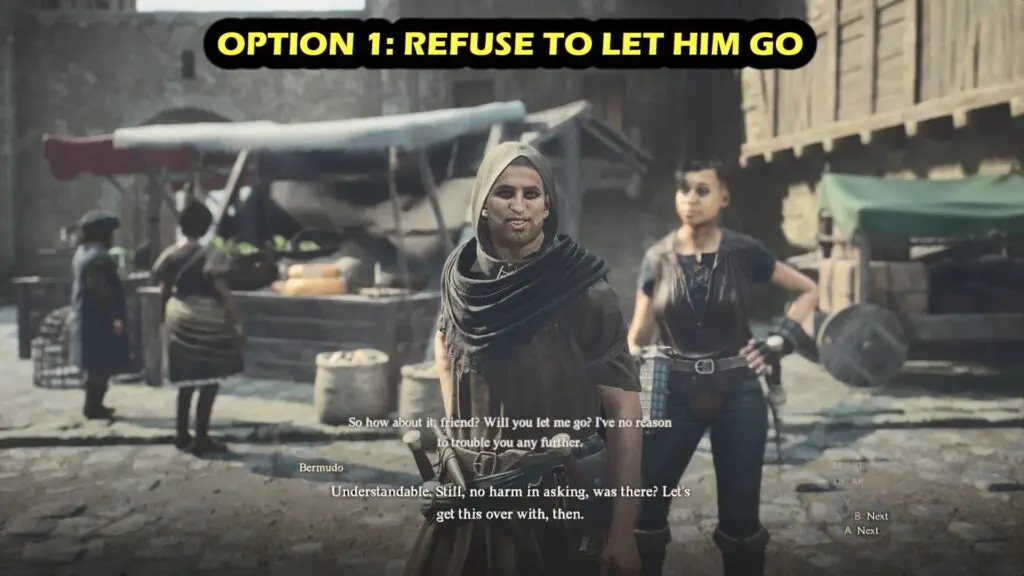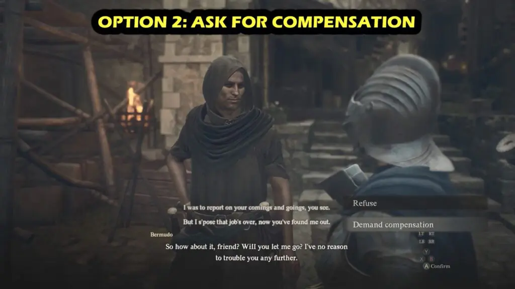 If you decline Bermudo’s offer, he will attack you. After the cutscene, Brant will take him in his custody.