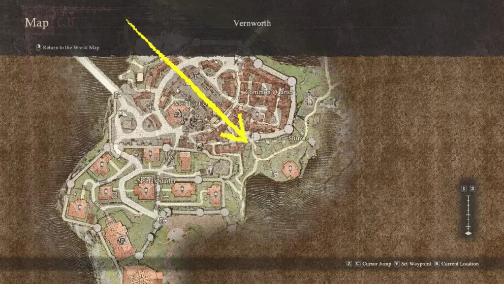 Speak with a girl named Daphne (NPC) in the Slums of Vernworth and accept her request to help her. You can find her at the location marked below. She is looking for a bunch of pretty flowers.
