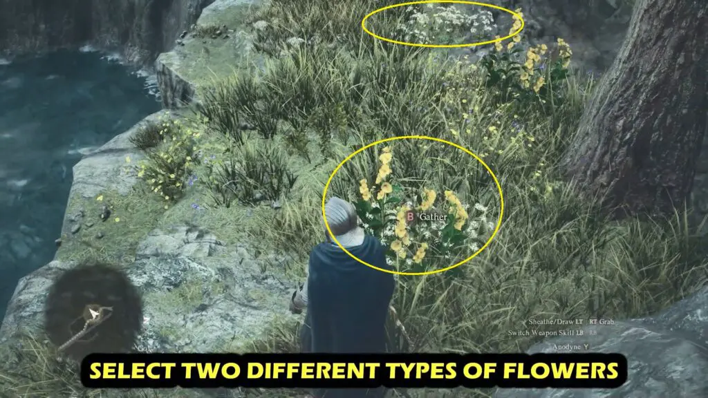 The game will indicate two spots on the map where you can find flowers. Pluck at least two distinct types of flowers.