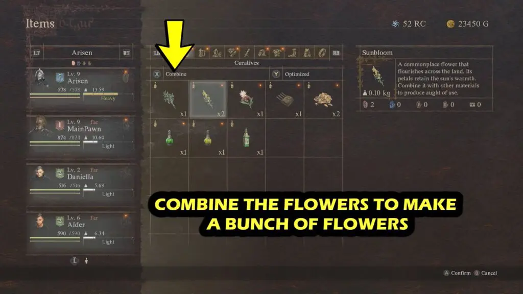 Combine them to form a bunch of flowers. Head back to the slums to give the flowers to Daphne.