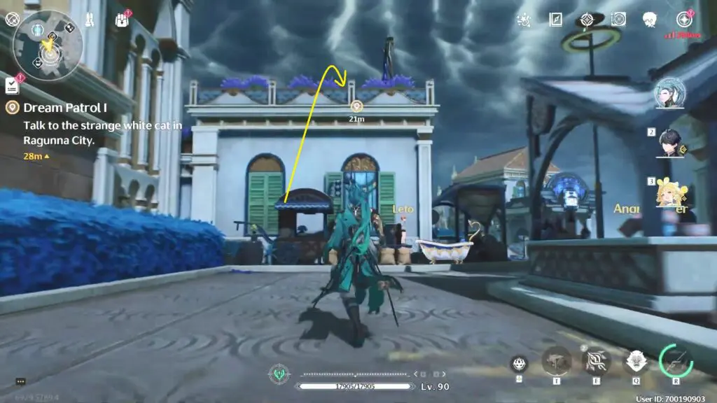 When you arrive at the City Square area, head south to the marked spot. Look for a building and climb to the top to find a mysterious white cat. Interact with the cat to begin the Nightmare Challenge.