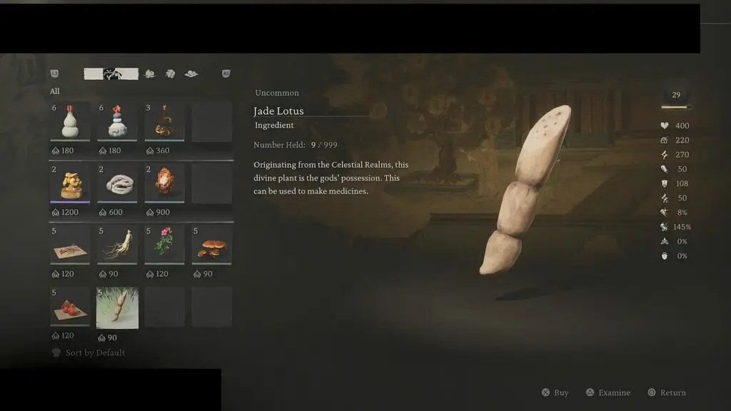 Jade Lotus can be found in the lake at the start of Chapter 2, as shown in the picture below. If you didn’t collect it before, travel to Sandgate Village: Village Entrance shrine. Climb up the stairs next to it and go left along the rocky hill to reach the lake and get the Jade Lotus.