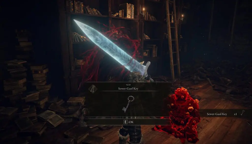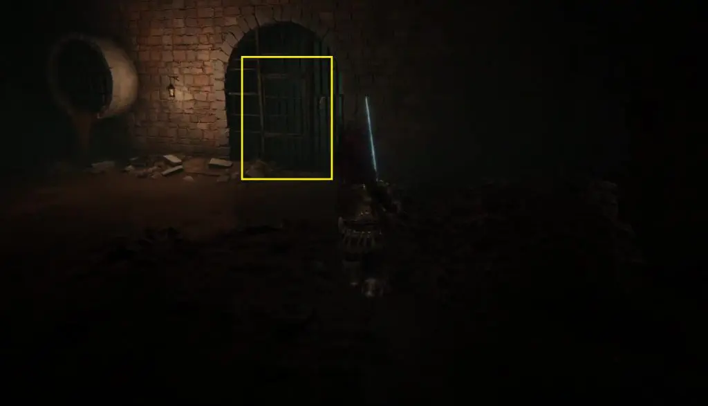After dropping down, continue ahead in the tunnel without entering into any other tunnel connected to the main one. At the end of the tunnel, climb up the ladder and then turn right. Open the gate here using the Sewer-Gaol Key to find the Dung Eater as shown in the picture below. Talk to him and ask him to leave his gaol.