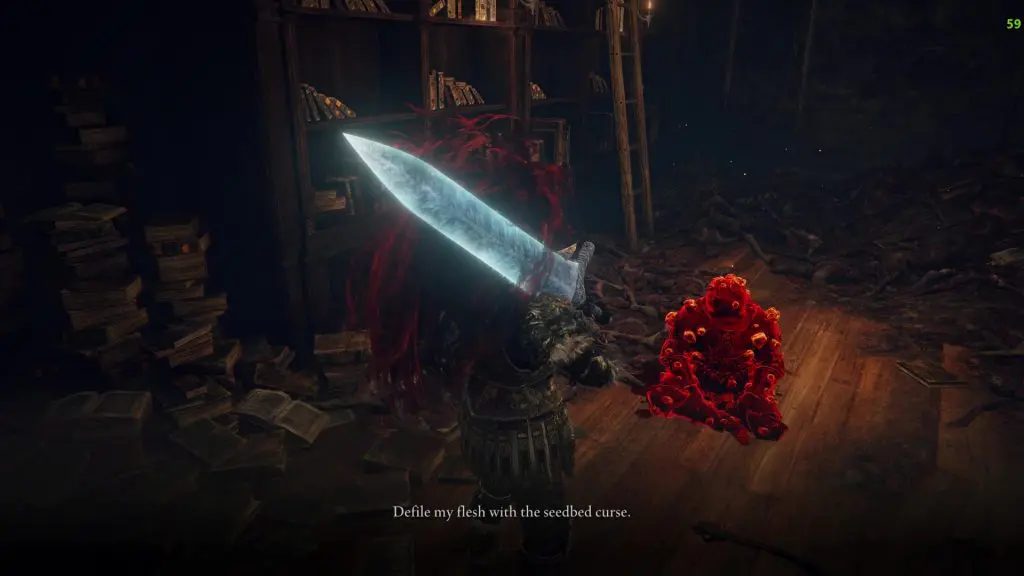 Then climb up the stairs to reach the roof, where you will find a corpse with a Seedbed Curse on it as shown in the picture below.