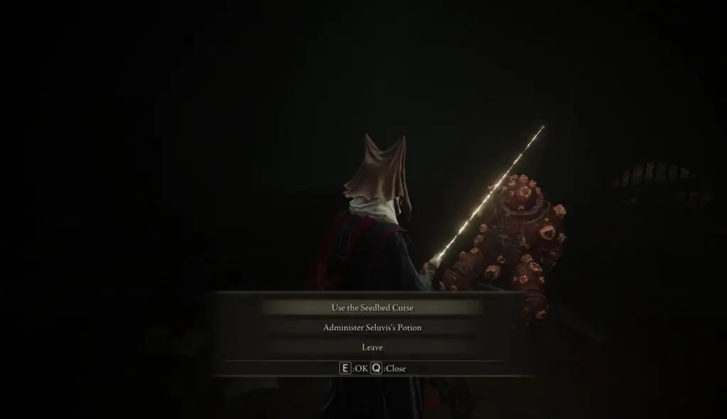 Go back to the Roundtable Hold and talk to Dung Eater. He will ask you to find more Seedbed Curse. There are a total of 5 Seedbed Curse in the game. You will have to find 4 more of them.