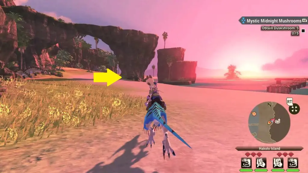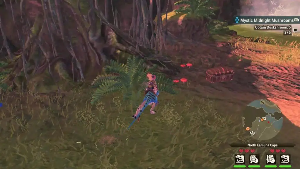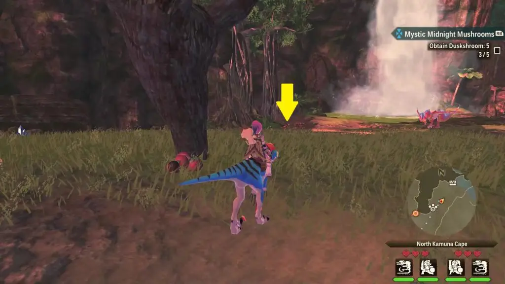 Upon entering North Kamuna Cape turn left. A little ahead you can collect three Duskshrooms from the bottom of a mountain arch as shown in the picture below. Check the location highlighted by a yellow arrow on the map below.