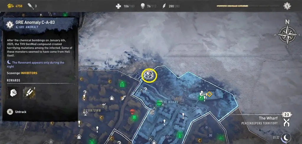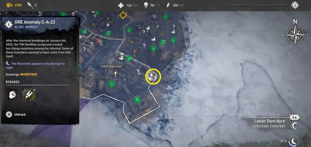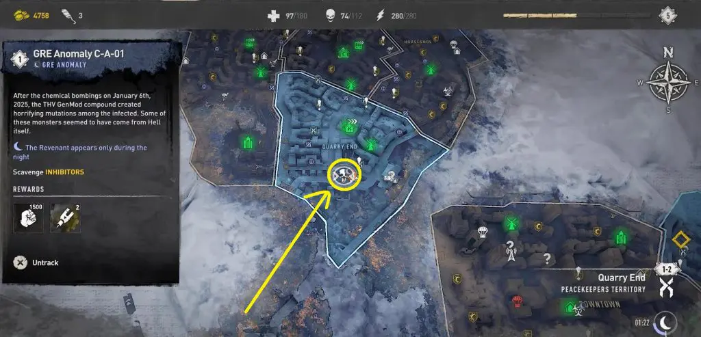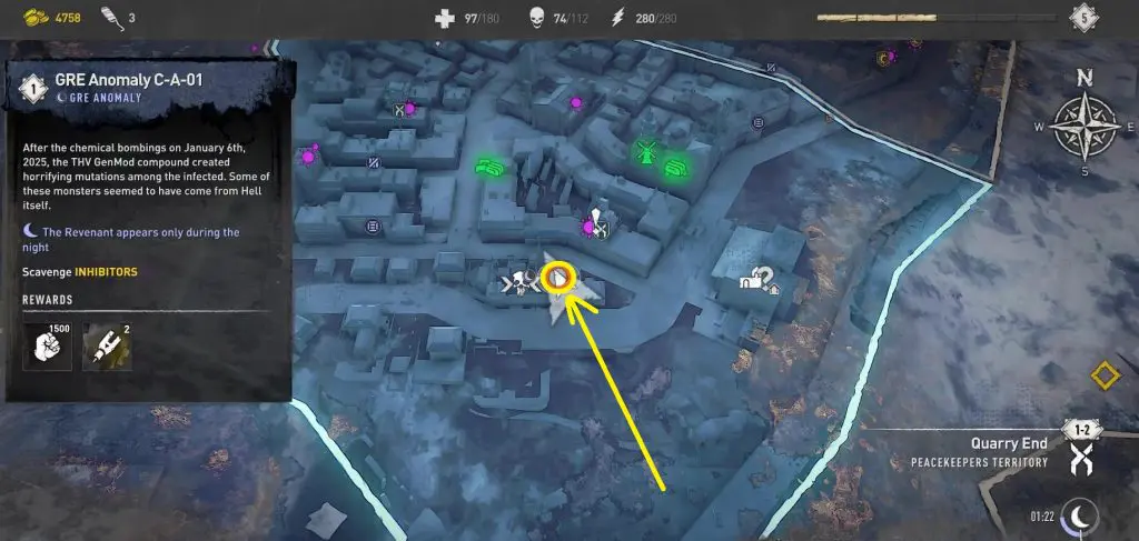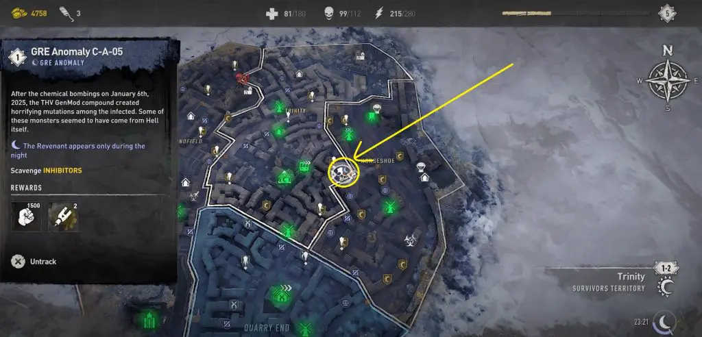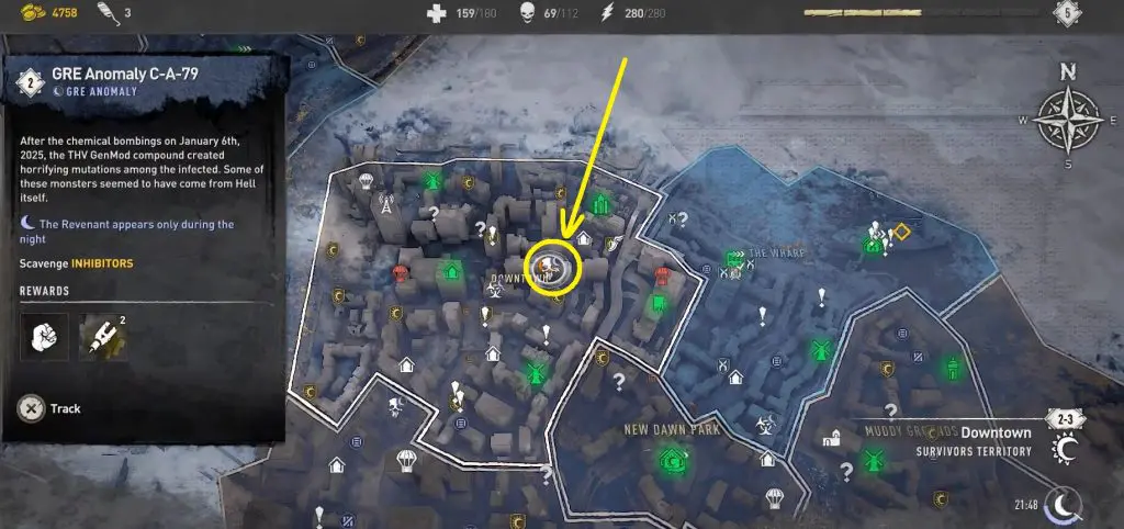 This guide will walk you through the entire process of locating and defeating all 12 GRE anomalies. Since GRE Anomalies only appear at night, you can go to a camp with a bed and set the time to night time. After defeating the GRE Monster, you will notice an orange-colored objective marker in the area leading to a trailer’s rooftop. Open the hatch and drop down to find a chest with 2 Inhibitors.