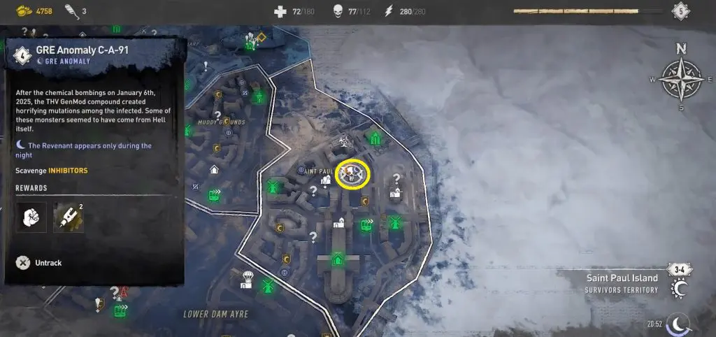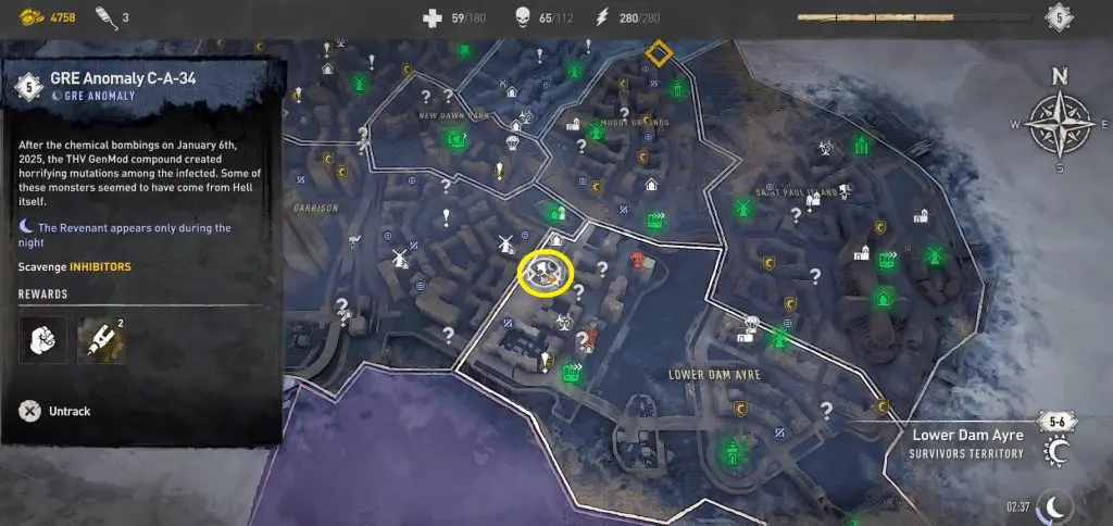 GRE Anomalies are mini-bosses that only spawn at night in a few key locations. Finding and defeating a GRE Anomaly is well worth the risk because you will be rewarded with a large number of combat points and an inhibitor for doing so. There are 12 GRE Anomaly Locations in Dying Light 2 Stay Human. After defeating GRE Anomalies, you will also receive the Revenants trophy and achievement.