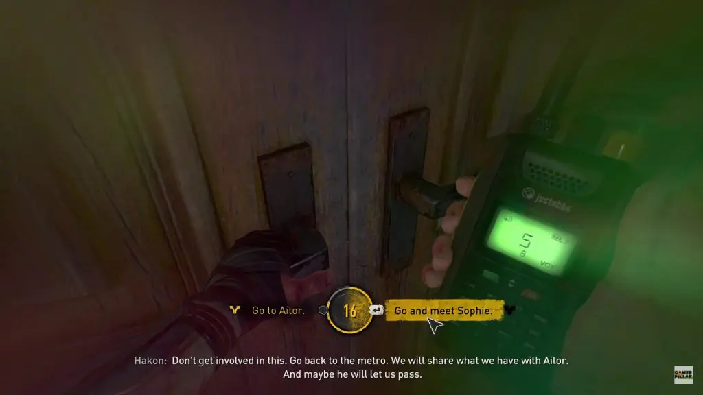 After rescuing Carl from the bandit camp during The Raid quest, you’ll be directed to the Tango Motel to meet Sophie. When you get to the door, Hakon comes on the radio and tells you to ignore the Survivors and go to Aitor instead.