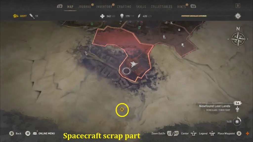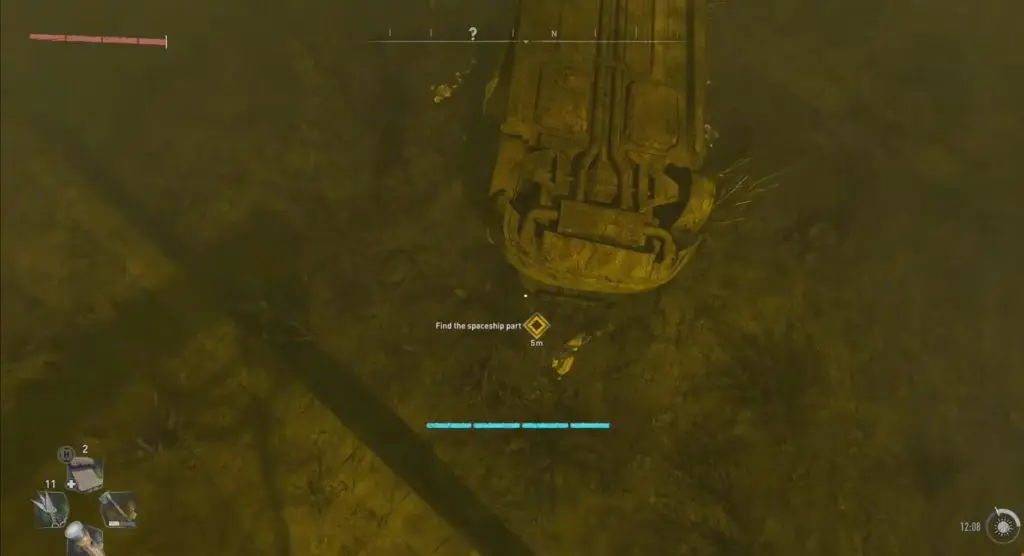 Go to the marker location and get the spaceship part. The scrap part can be found near an upturned car at the bottom of the water. This might change depending on certain aspects of the ending