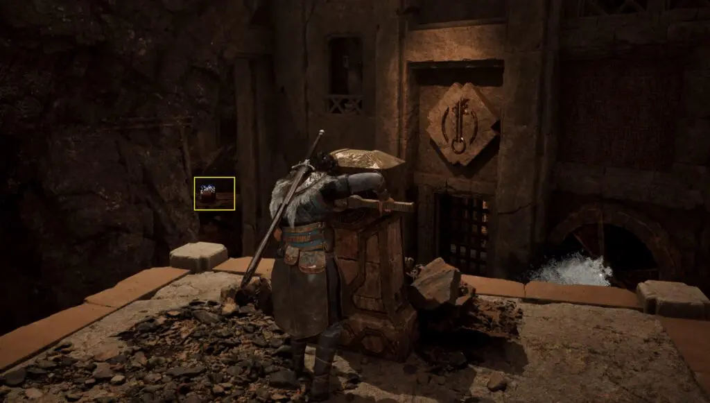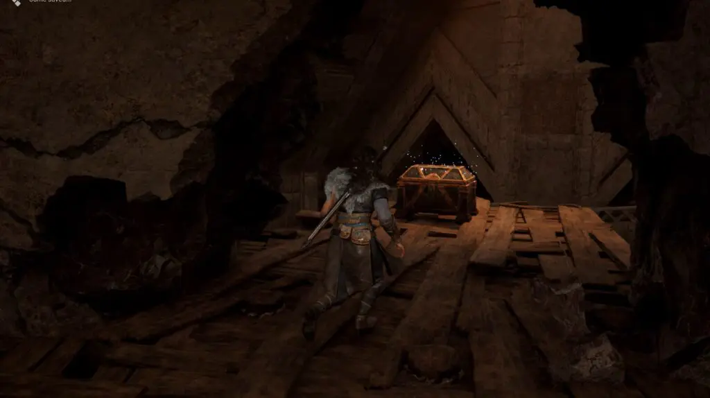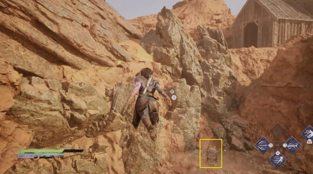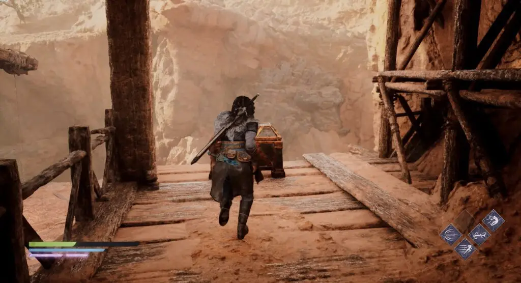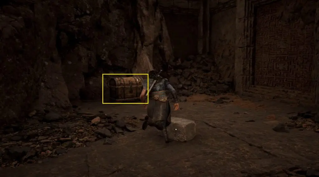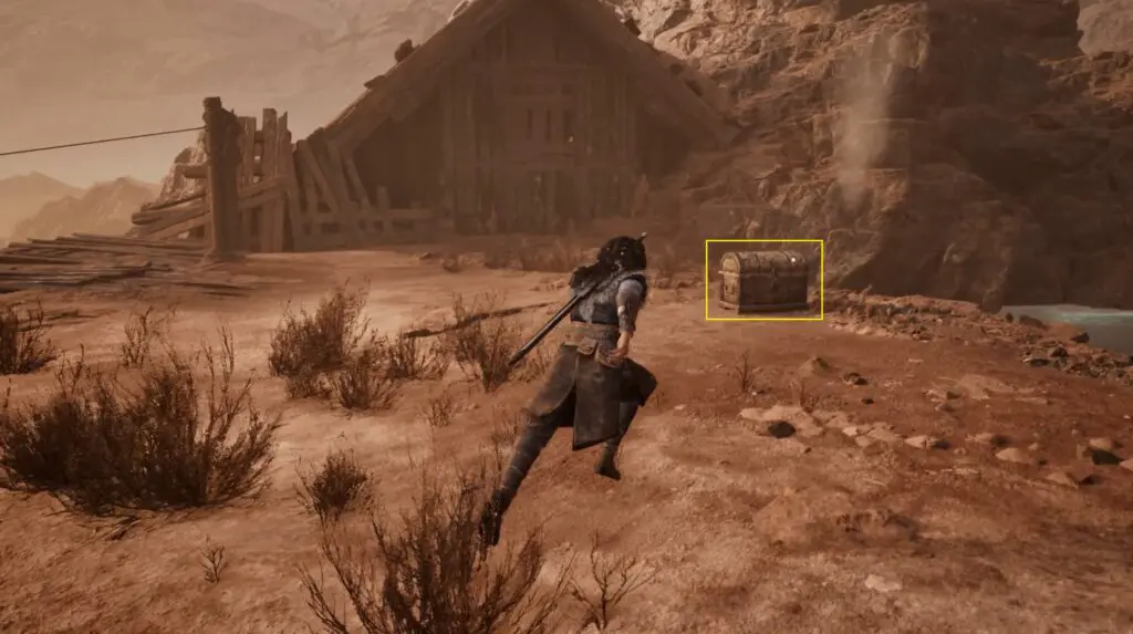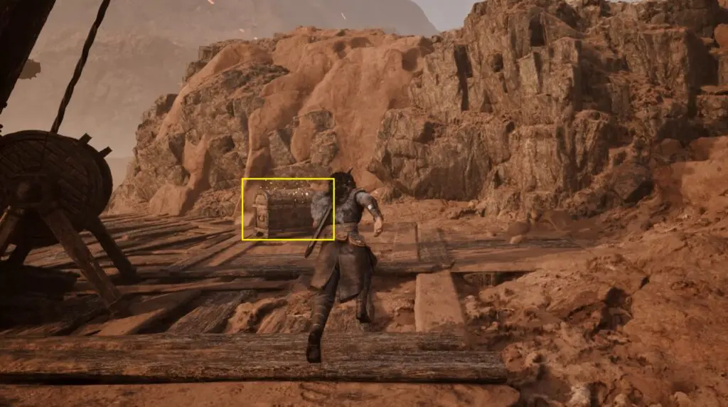 After obtaining the Dagga, you’ll return to the outside world. The chest is located in the area where you fight the soldiers. The chest can be found on a wooden platform by the side of the cliff.
