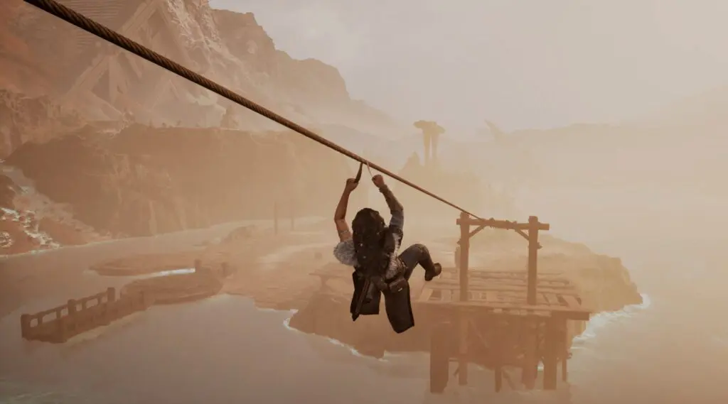 From the previous collectible, use the zipline to reach the bottom. Proceed forward and go through the door in between.