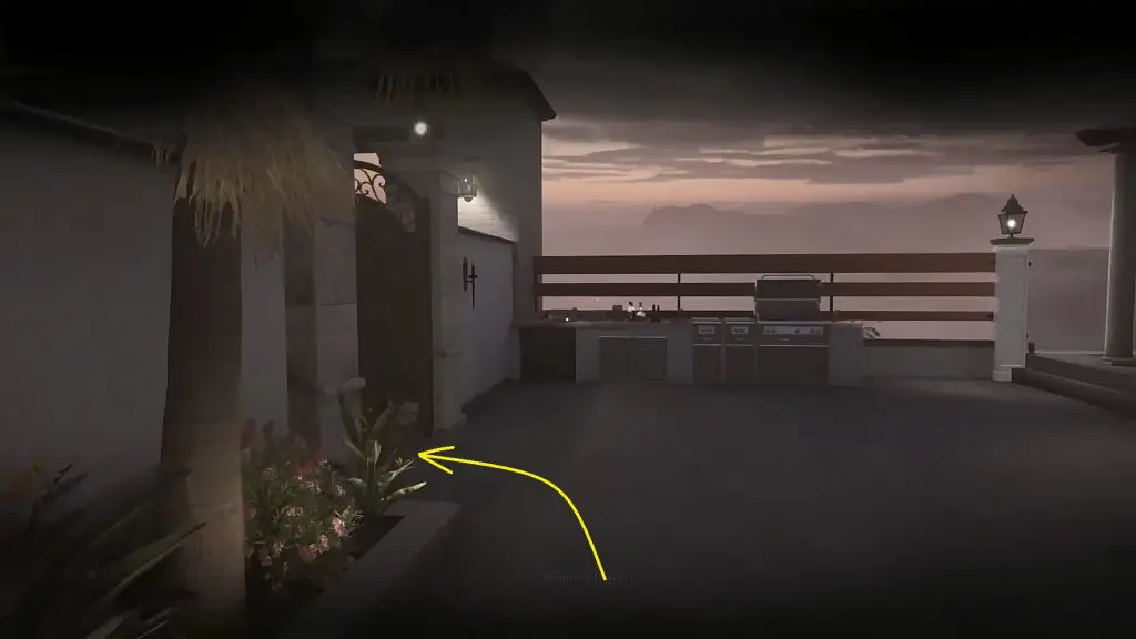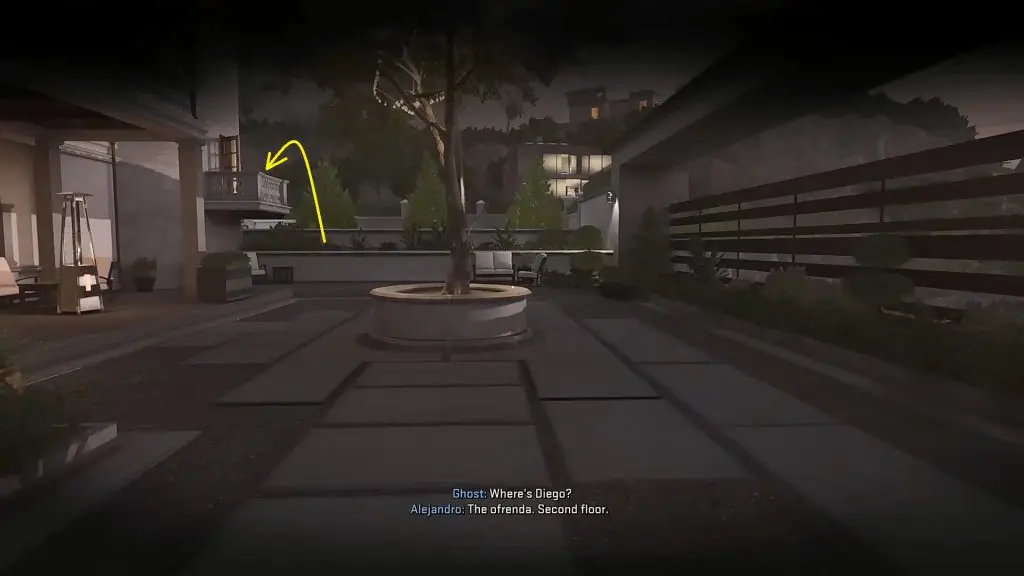 Once you are in the backyard, climb up on the balcony shown in the picture below. This will take you to the second floor. Then proceed ahead to the hallway. In the hallway, go right to the end. Then turn left and take out the enemy patrolling there. Then proceed ahead to the end and then turn right to reach Diego’s room.