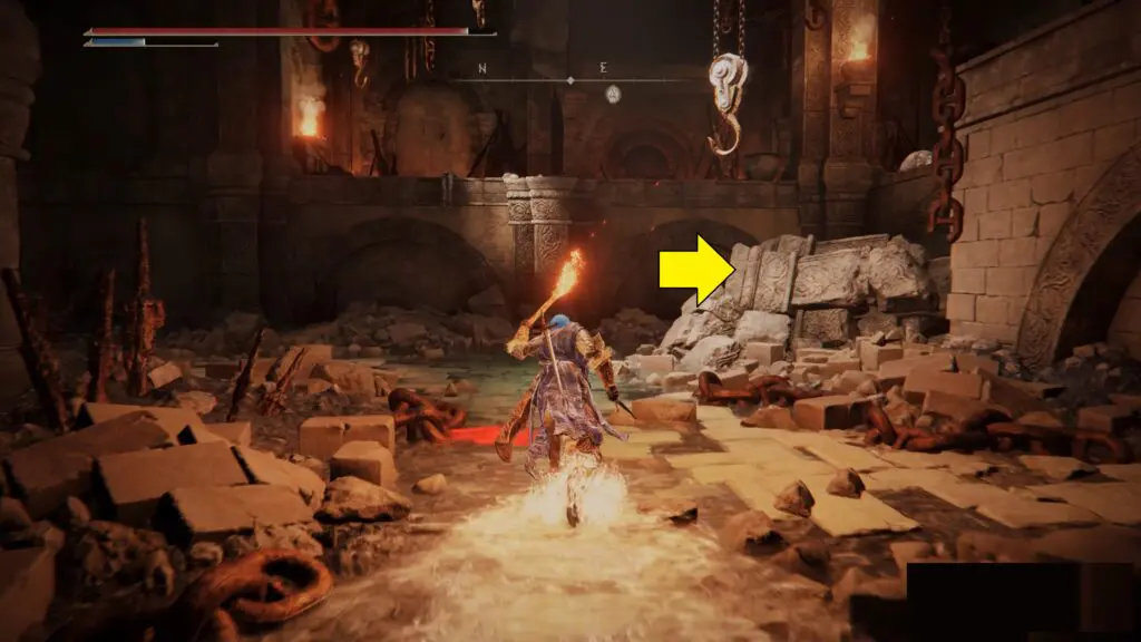 In the next area, drop down to your right and use another lever near a brazier to lower the heavy iron door.