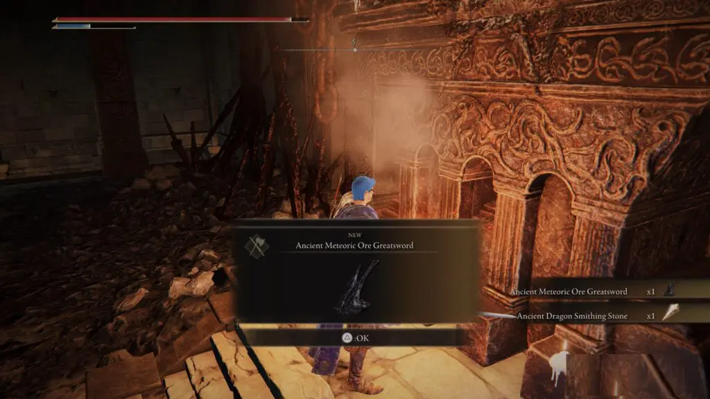 Advance into the next room and interact with the altar to obtain the Ancient Meteoric Ore Greatsword.