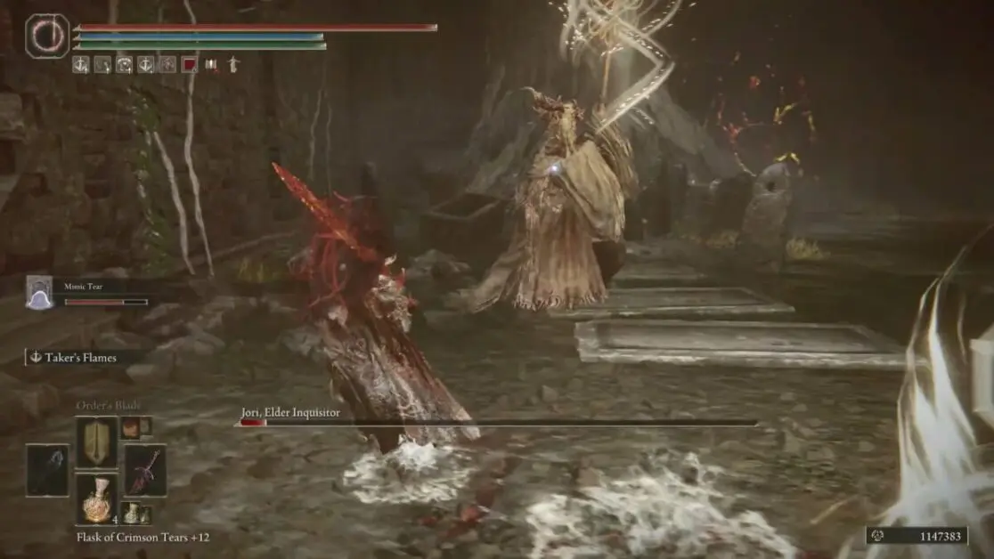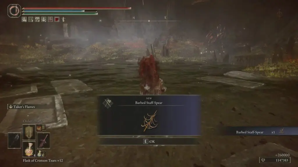 Follow the path to the fog wall. Defeat the boss Jori, Elder Inquisitor to obtain Barbed Staff-Spear.