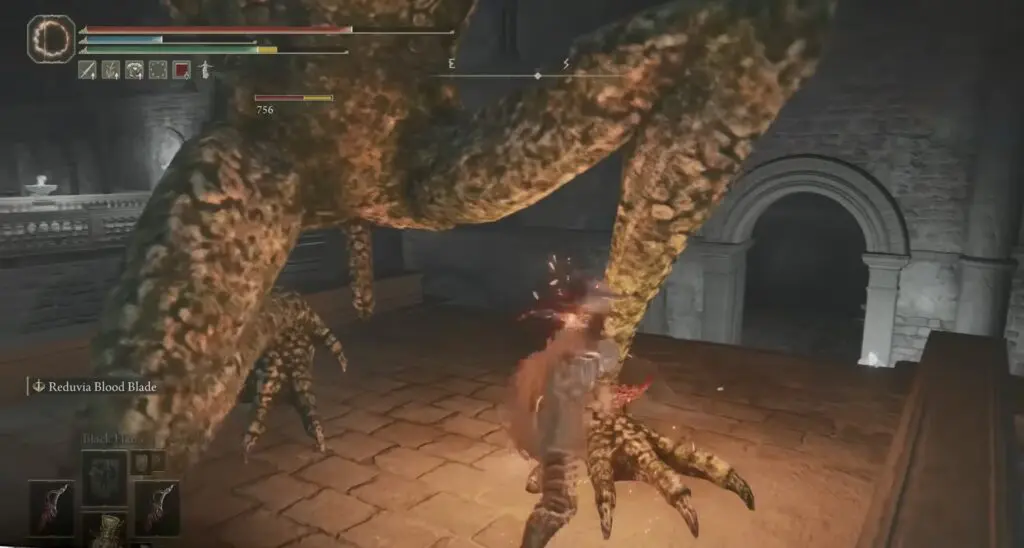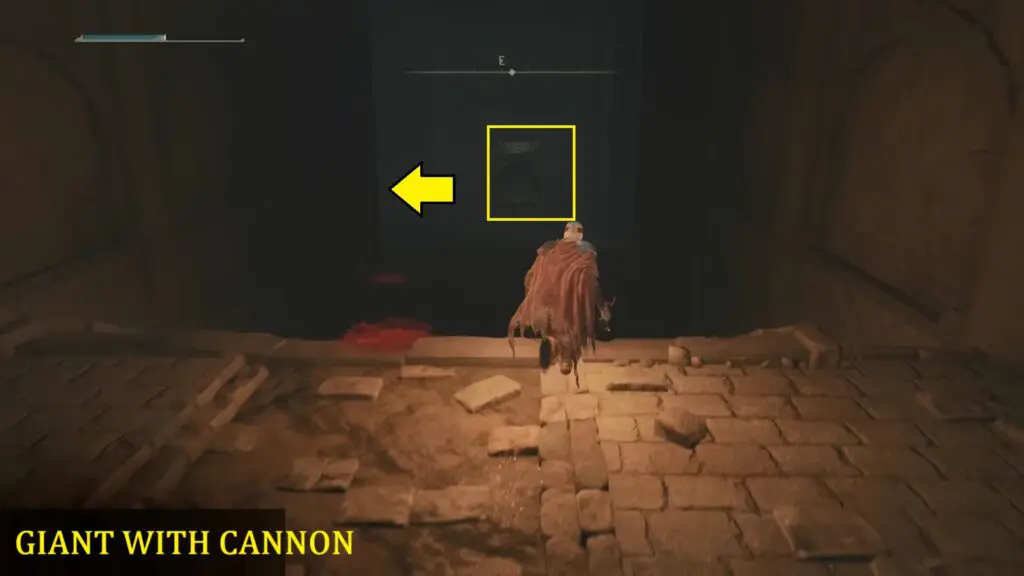 Proceed down the steps ahead to enter a large, dimly lit room. On the far side, you’ll see a giant cannon-head Imp start attacking you. To fight the giant cannon-head Imp, you need to time your dodges from the explosive projectiles and hide behind some pillars and alcoves.