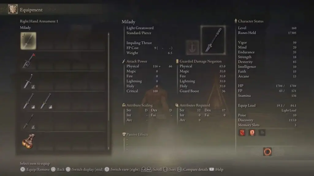 Milady is one of the new Light Greatsword weapon types added to Elden Ring by the Shadow of the Erdtree DLC.