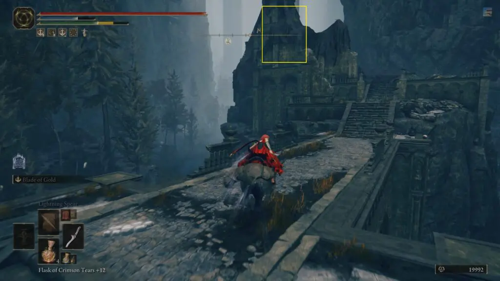 Then, go southwest to find the Rauh Fog Rift Catacombs. Continue further in the southwest direction and cross the river to reach the Temple Town Ruins.