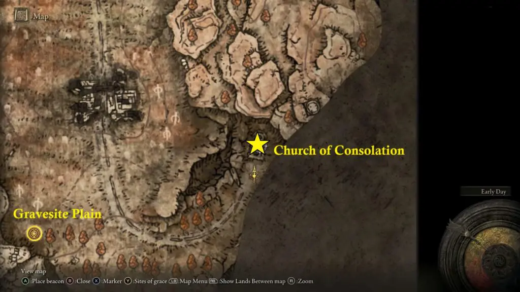 The first scatter tree fragment can be found inside the Church of Consolation. Church of Consolation is located in the southern part of the map, east of Gravesite Plain – Site of Grace.