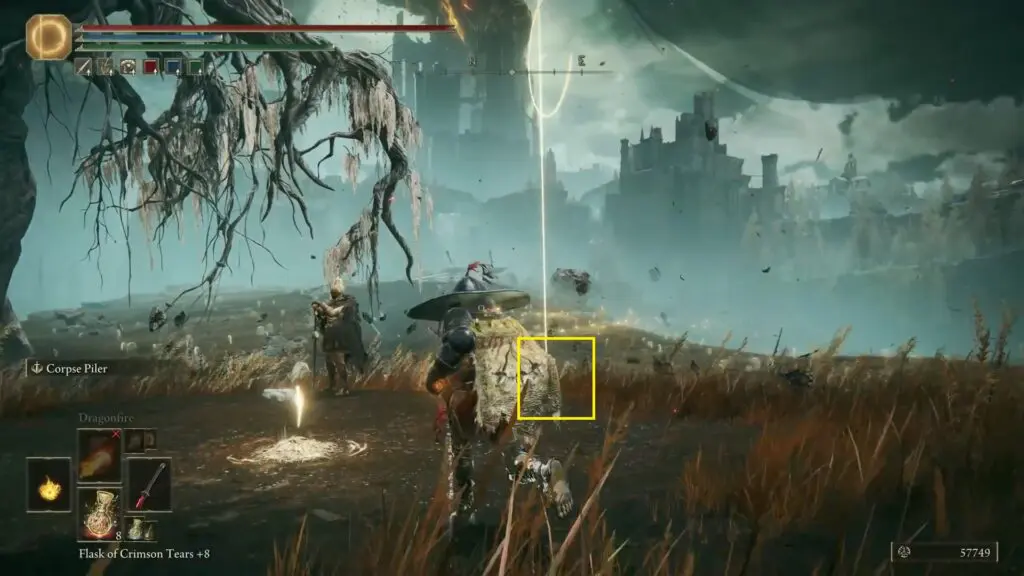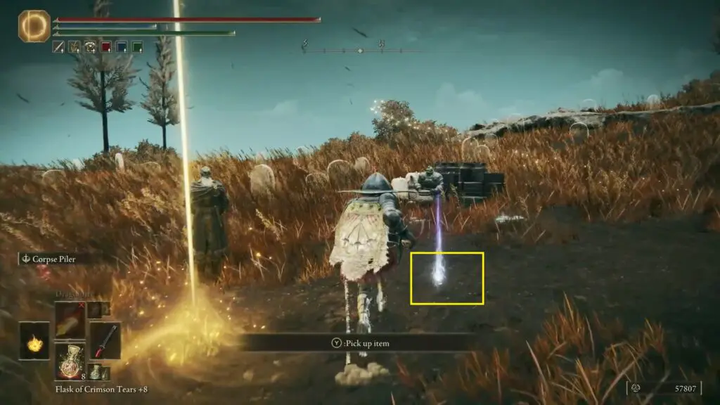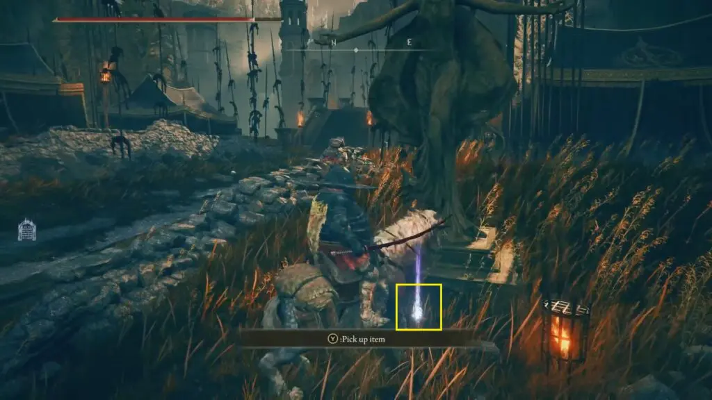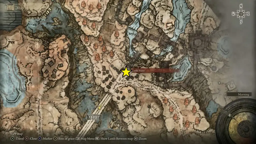 Head to the Castle Front site of Grace. Just in front of that site of grace, to the right-hand side, you’ll find another statue. At the foot of the statue, you’ll find an item.