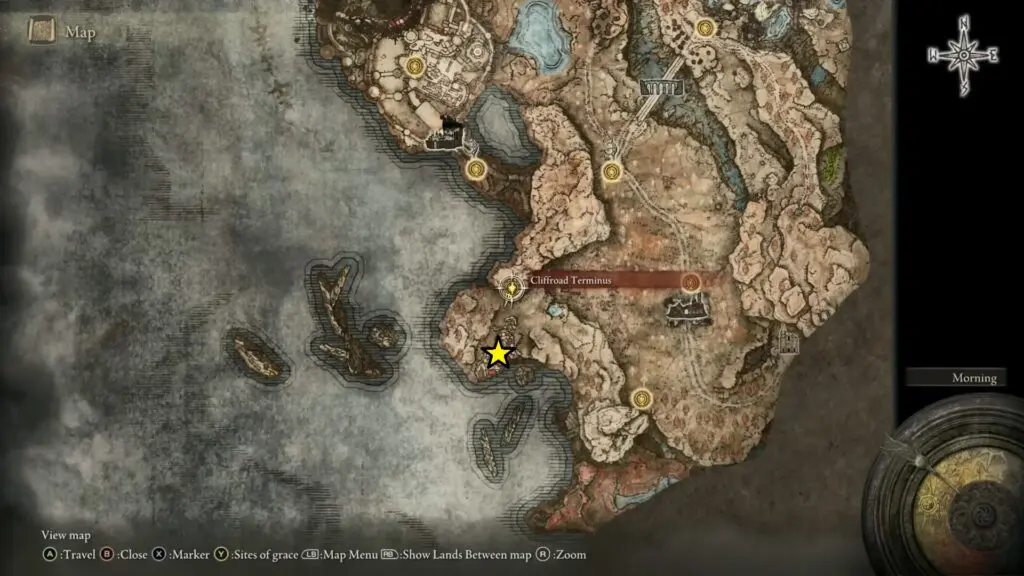 Returning to the Cliff Road Terminus site of Grace and head directly east. You should come across the Cliff’s Edge with another statue with Revered Spirit Ashes.