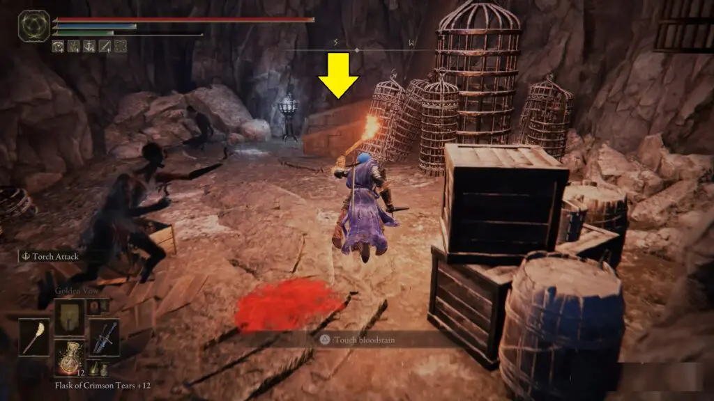 Enter the Bonny Gaol, proceed down the path, and enter the room directly ahead. Jump into the cave.