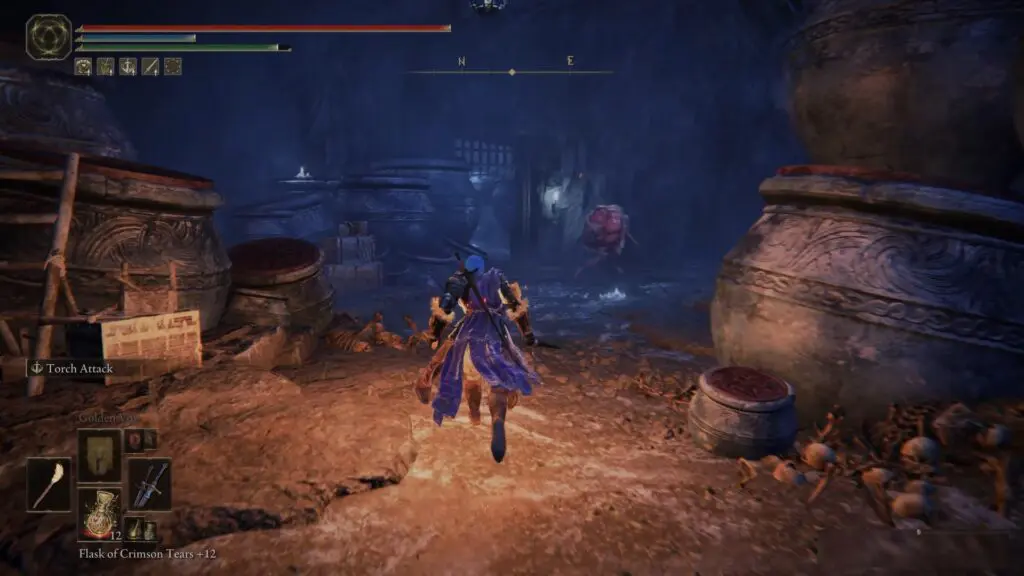 Proceed in the cave, then make a left to enter a section where large jars are attacking you.