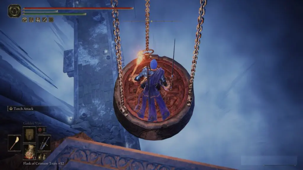 Follow the path until you get to a place with a large jar-shaped elevator. Take the elevator down to the bottom (you don’t need to go here). Get off, then hop back on the elevator. This time, it will take you slightly higher than the starting location.