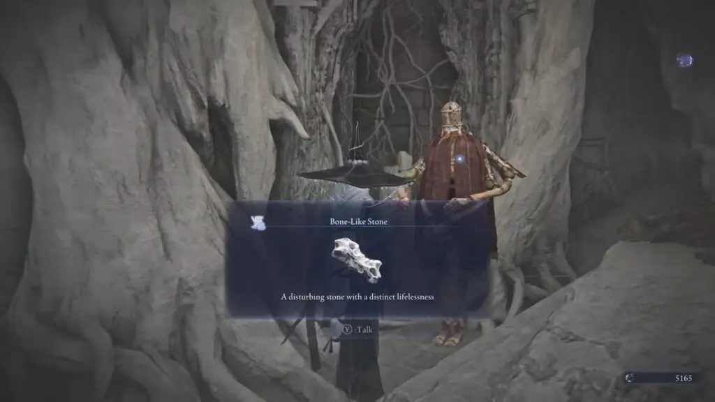 Inside the Crypt, you’ll come across a robot that appears to be powered down. Turn him back on, and he immediately blames you for what happened. After the cut-scene, he eventually hands you a mysterious item called Bone-like Stone.