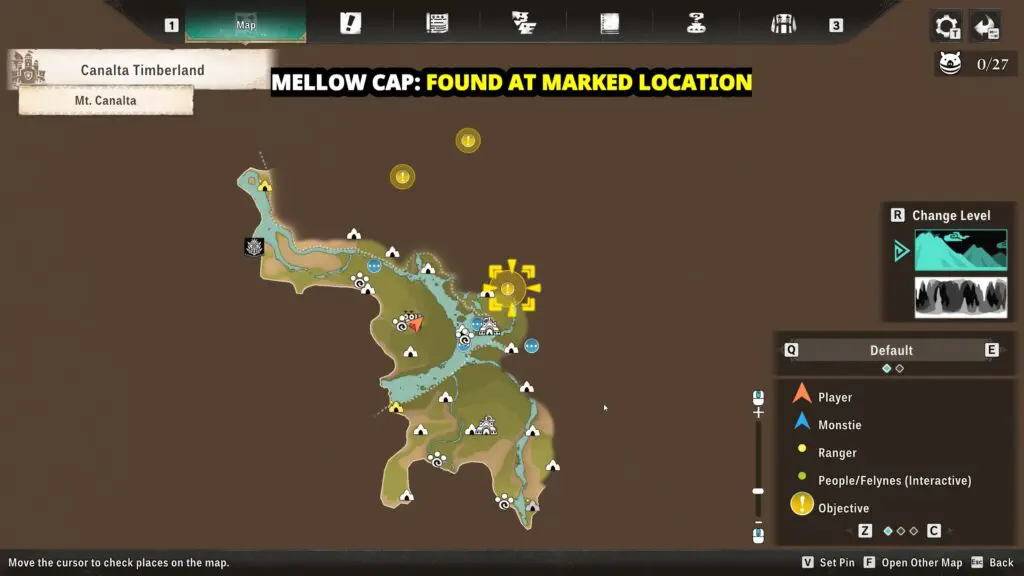 Head to the marked location on the map. Look carefully around the area, especially near trees with red leaves to find Mellow Cap.