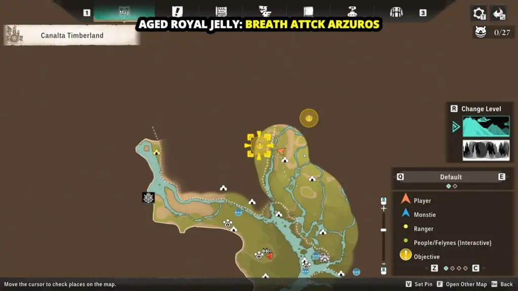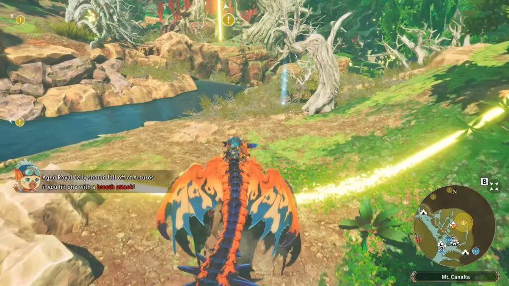 Head to the location marked below. This material is obtained by defeating Arzuros. Use a Breath Attack to knock the Arzuros. Collect the dropped material to obtain the Aged Royal Jelly.
