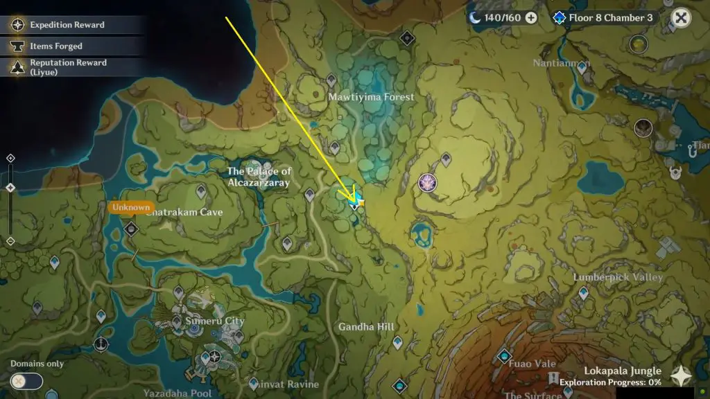 Go to the statue of the seven on the northeast side of Sumeru City as shown in the pictures below.