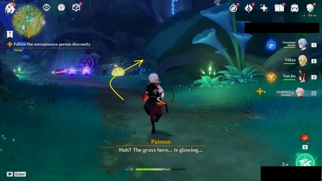 Keep following this path until you come across an Electro Abyss Mage. At this location, take the path going right as shown in the picture below, and enter the cave.