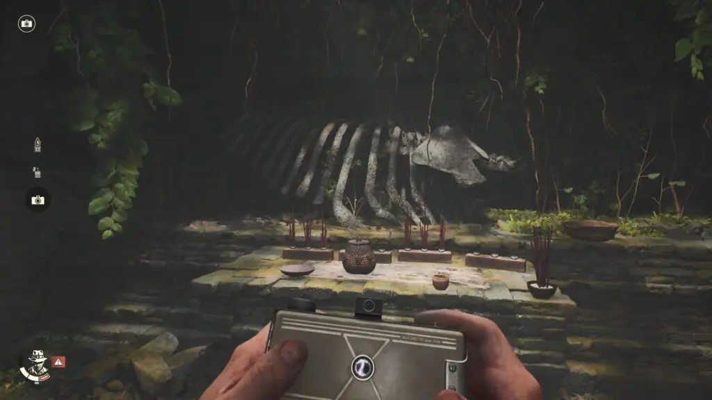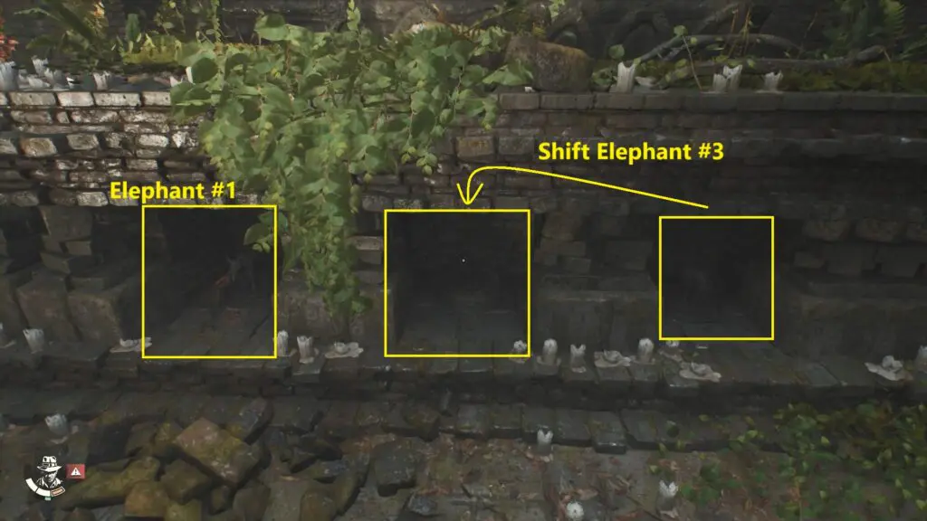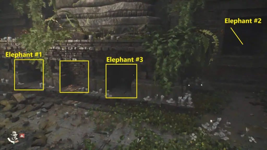 Once you’ve placed all three elephant statues, a hidden passage will appear on the right wall. Head inside and snap a picture of the elephant skeleton to complete the mystery.