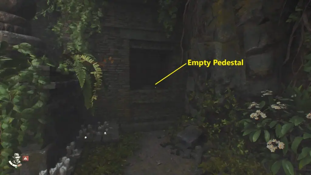 As you leave the passageway and approach the statue, you’ll notice another empty pedestal on the wall just before the exit. Just remember this location now as placing an Elephant statue here will reveal the middle pedestal underneath the Buddha statue.