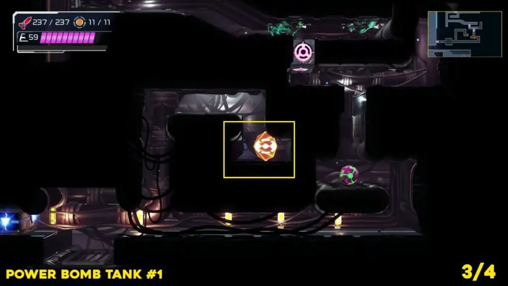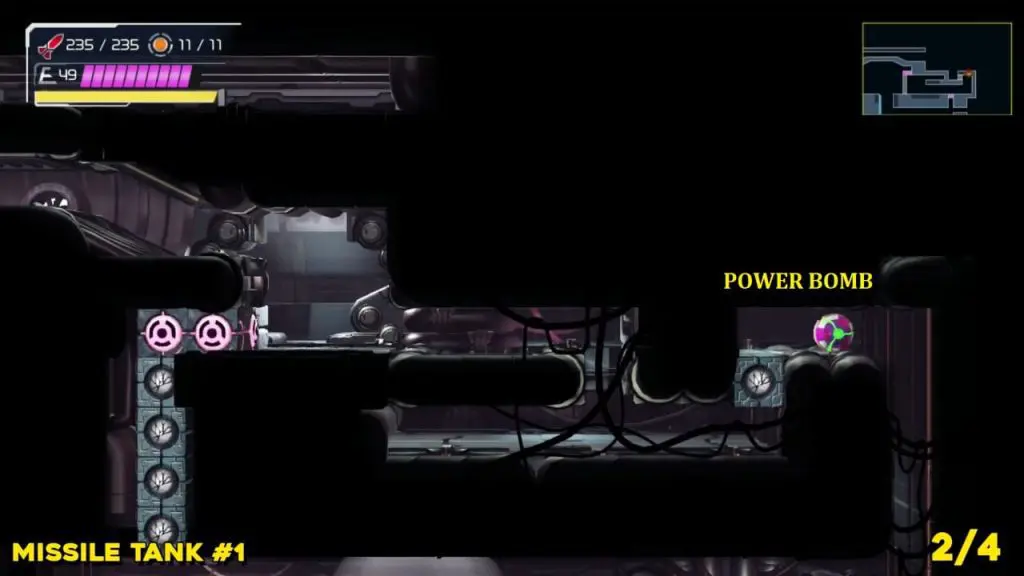 This is located directly south of the last tank. To get this one, we’ll need to use the giant fan in the area we’ve marked on our map to charge up our speed boost, activate shinespark, and quickly make our way down a short distance, zigzagging to where the speed blocks are located to perform a straight-up jump, smash them, and finally grab the upgrade.