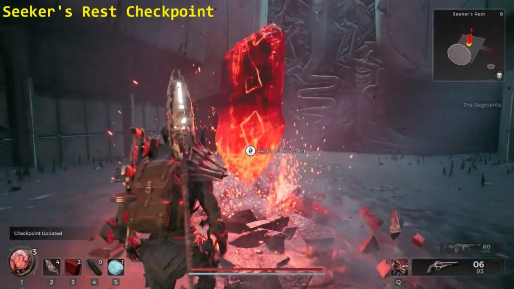 The first Seeker’s Key can be found in Seeker’s Rest, which is the starting area of N’erud. As you enter Seeker’s Rest, continue advancing from the checkpoint, and go down the elevators to reach the main hall with a tall statue.