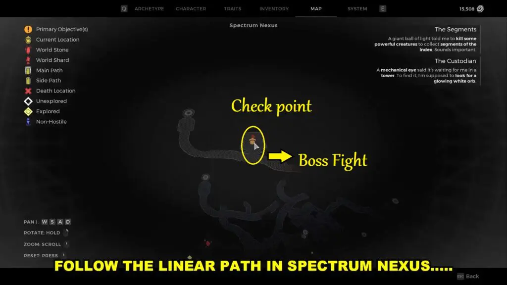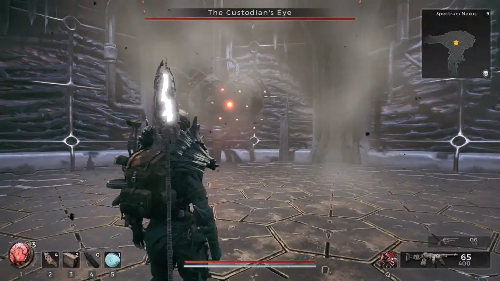 Follow the linear path in Spectrum Nexus and defeat the boss – The Custodian’s Eye.