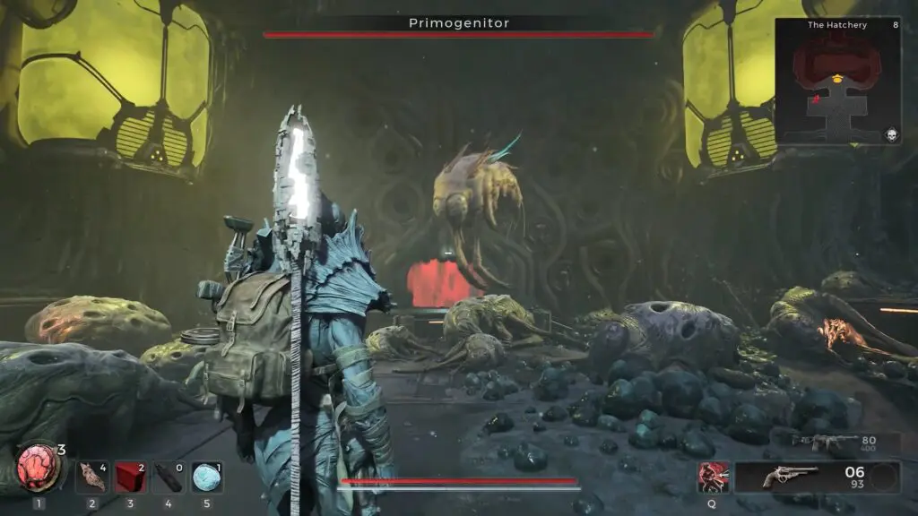Follow the linear path in The Hatchery and defeat the Boss – Primogenitor.