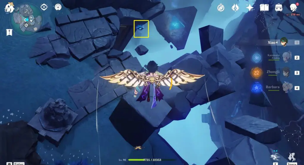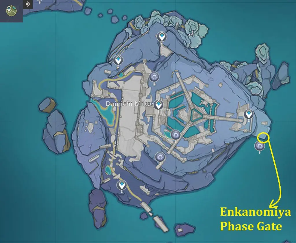 Located on a small floating island on the eastern side of the main island. Use an Enkanomiya Phase Gate to reach there.