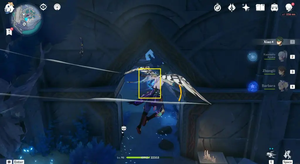 This one is floating above the ghostfish pool. Jump from a height to the Ghostfish portal located in the middle of the pool to activate your glide. Collect the Key sigil when you are floating upward.