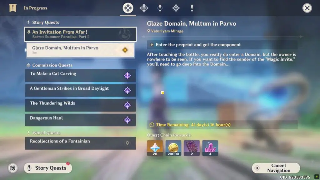 The latest Genshin Impact 3.8 update introduces a new limited area called Veluriyam Mirage. One of its quests, Glaze Domain – Multum in Parvo, includes a stage where you must enter the Stone Wall and rescue the Water Droplet’s Friend from a mysterious domain in a preprint puzzle. This article will guide you to complete the objective “Enter the preprint and get the component” for the quest “Glaze Domain – Multum in Parvo” in Genshin Impact 3.8.