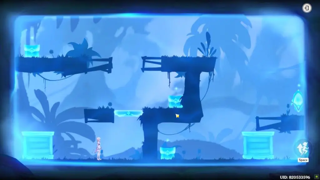 The Preprint World is a straightforward 2D environment that requires you to navigate by moving right, left, and jumping. This is the second puzzle of the quest where you’ll encounter two wooden crates obstructing your path.