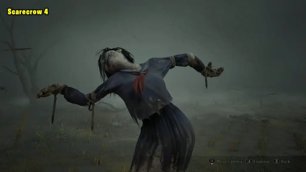 5th Area: In the field, you’ll see four scarecrow corpses lying down. Follow the direction their arms are pointing, and it will lead you to a lone scarecrow standing by itself.