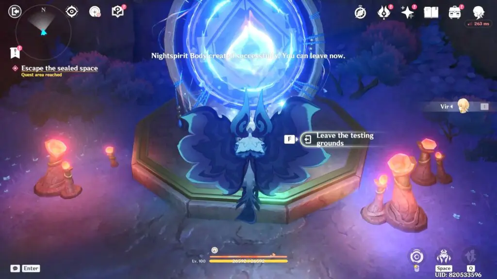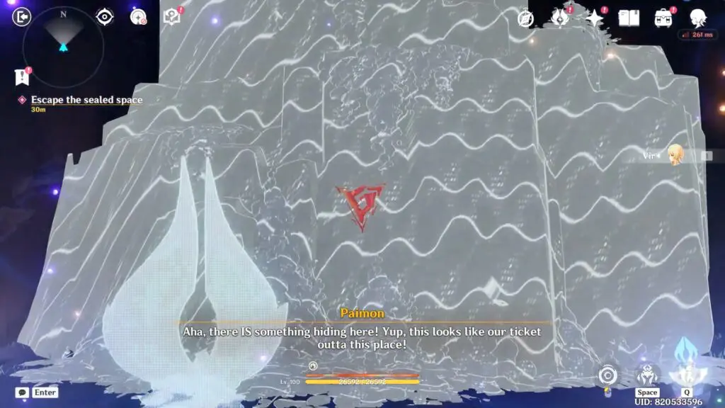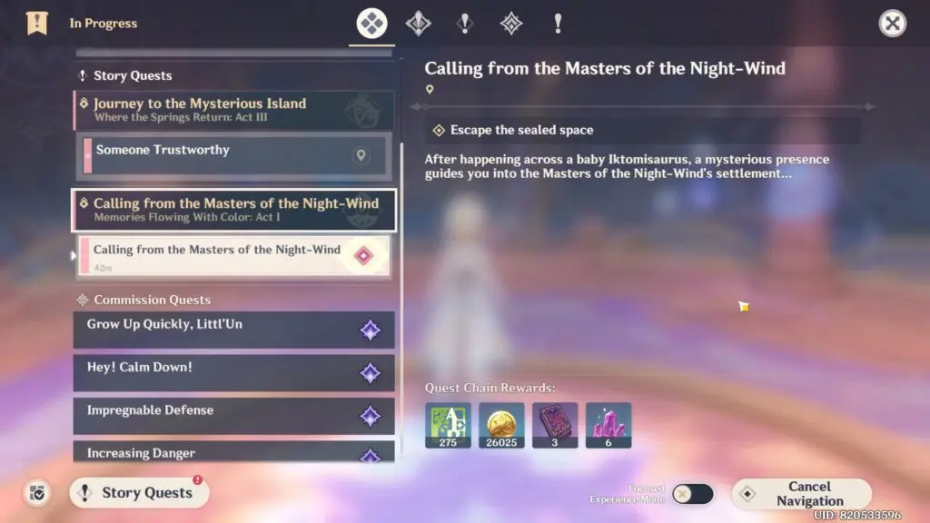 As the quest ‘Calling from the Master of the Night-Wind’ progresses, the player will get teleported into a sealed space where they need to find clues to get out of the sealed space.